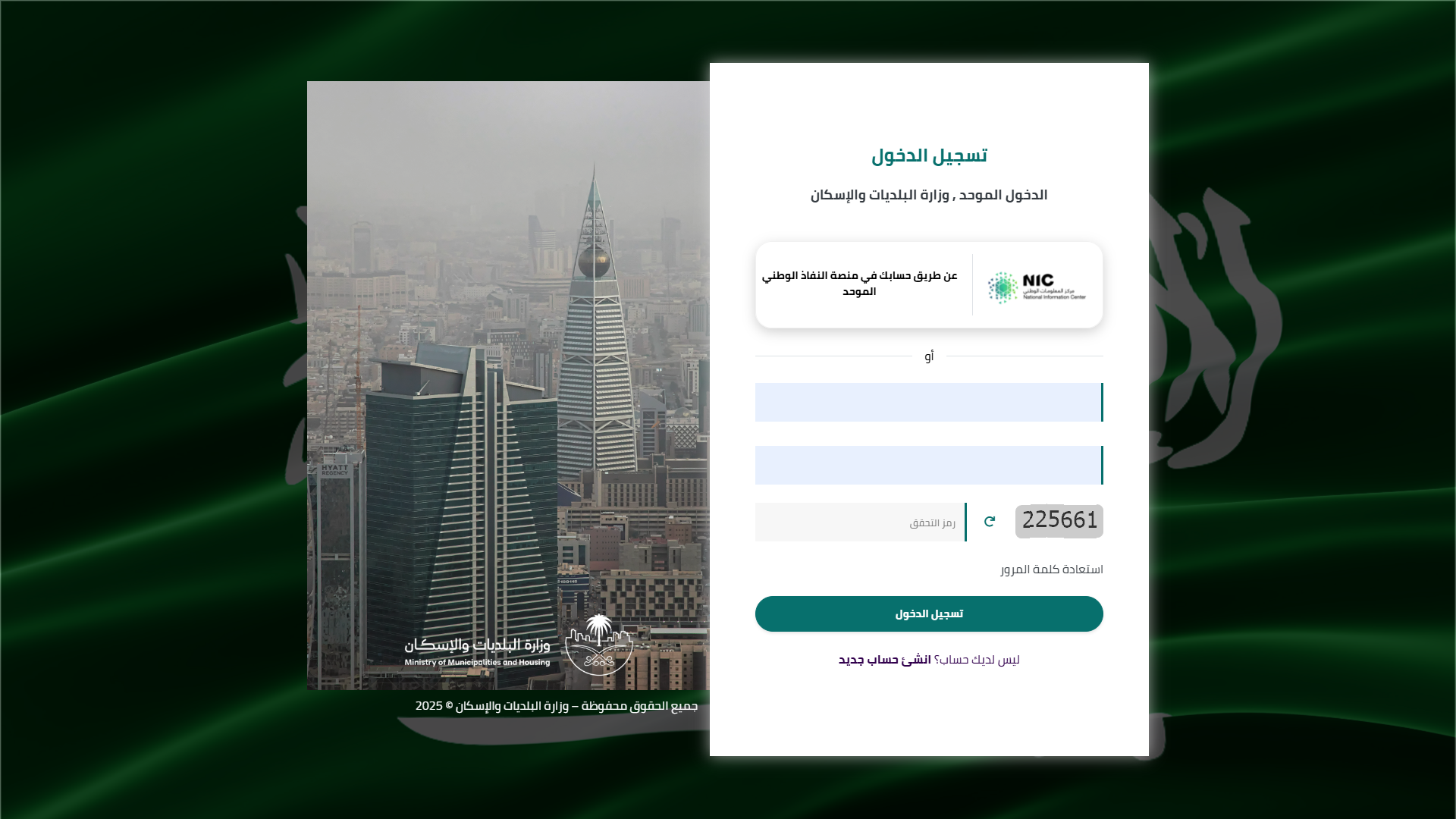 1) بعد الدخول إلــــــى رابط النظام تظهر الشاشة التالية، حيث يتم إدخال بيانات المستخدم (رقم الهوية/الإقامة، كلمة المرور، رمز التحقق)، ثم يتم الضغط على الزر (تسجيل الدخول). مع إمكانية تغيير رمز التحقق من خلال الضغط على شكل السهم الدائري.