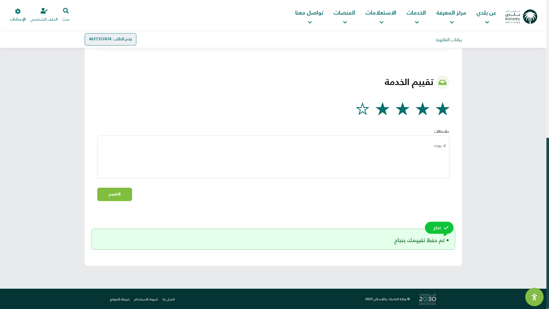 11) وبعد الضغط على الزر (التقييم) يتم حفظ التقييم بنجاح كما في الشكل التالي.