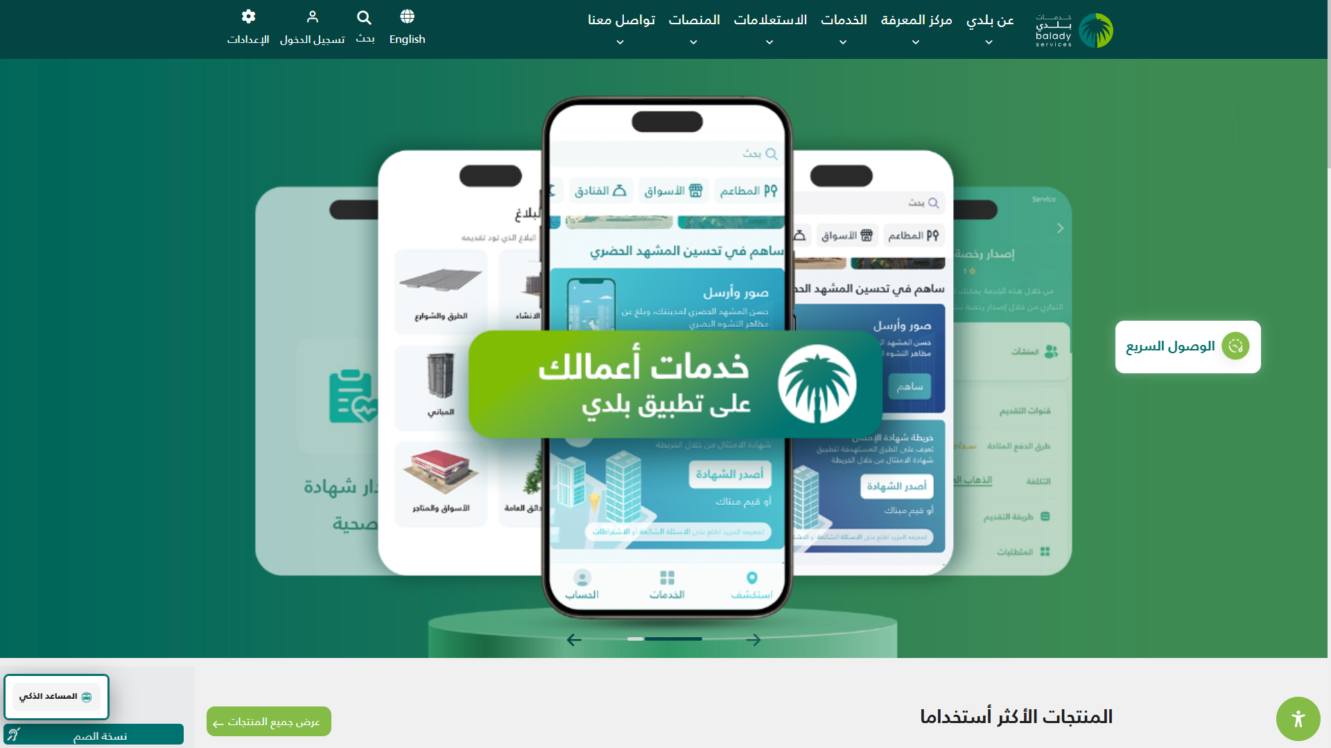 2) وبعد الدخول إلى منصة بلدي، تظهر الشاشة الرئيسية للمنصة كما في الشكل أدناه.