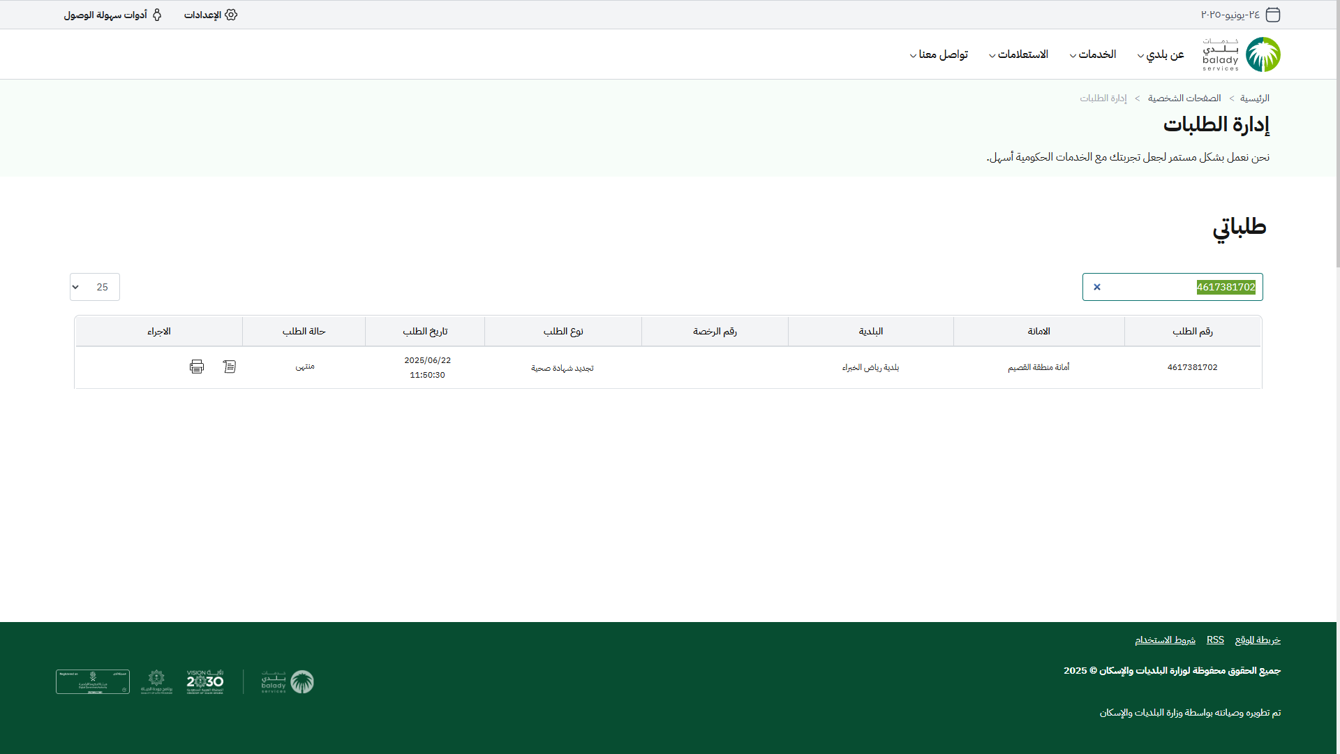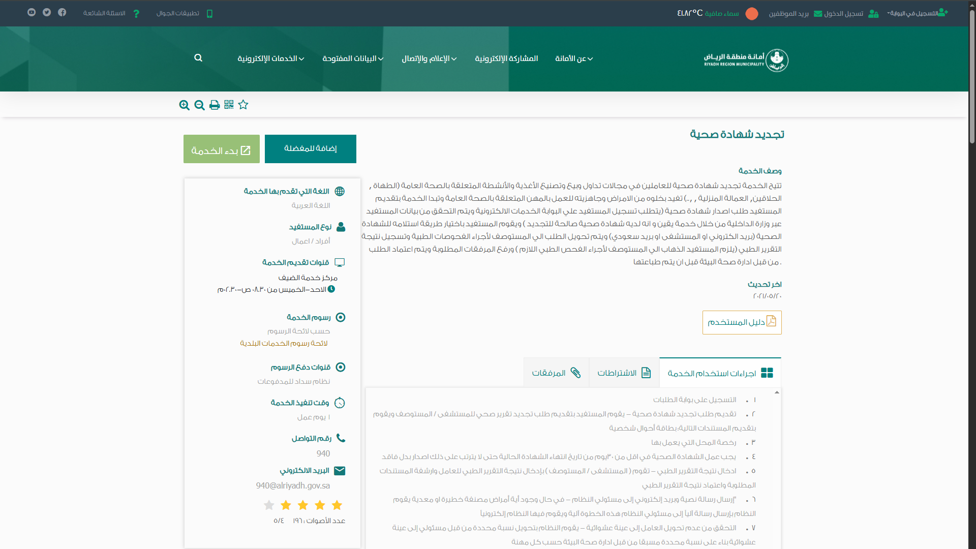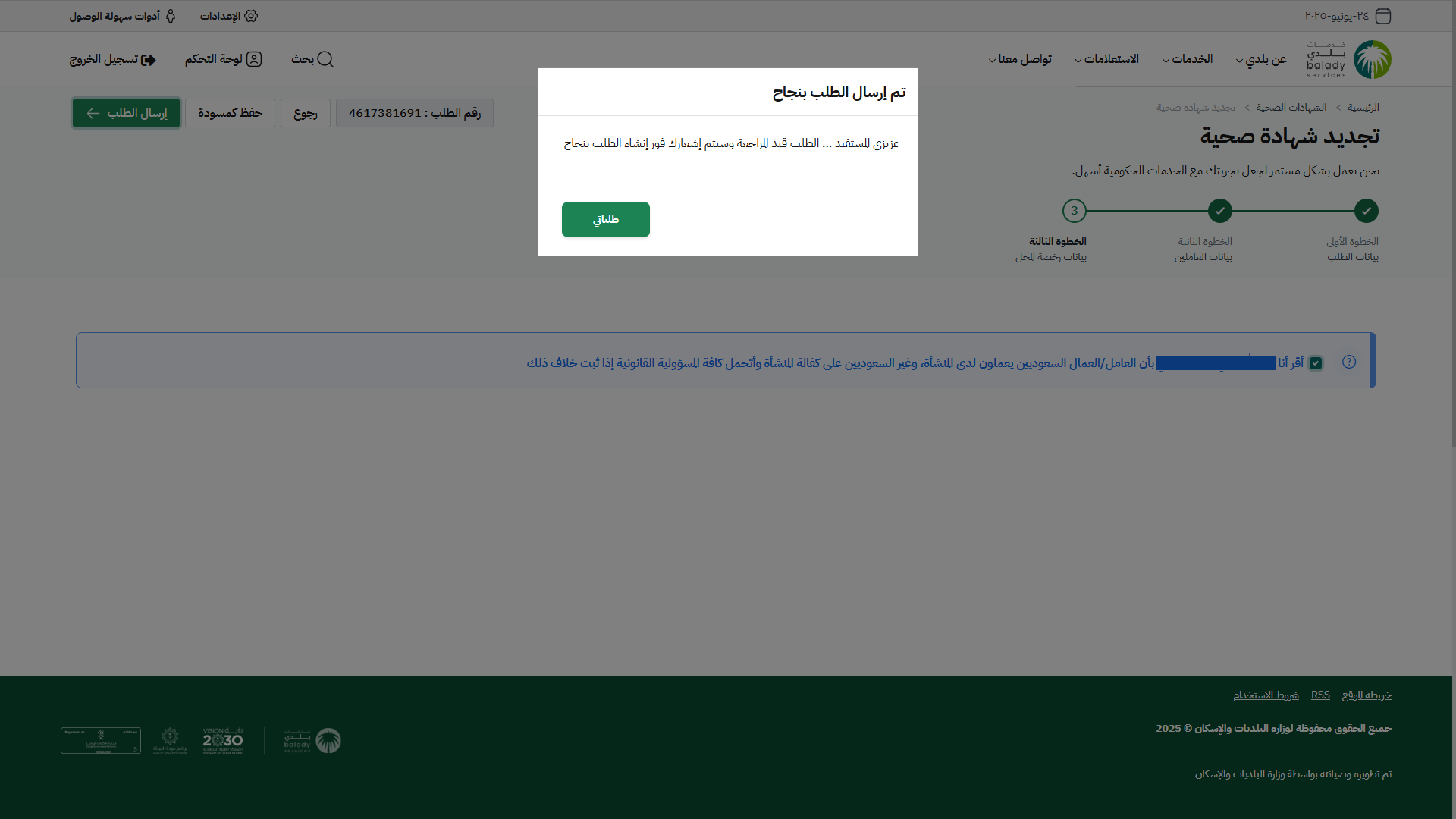 22) وبعدها يتم نقل المستخدم لموقع (أمانة منطقة الرياض) ليقوم بتجديد الشهادة الصحية.