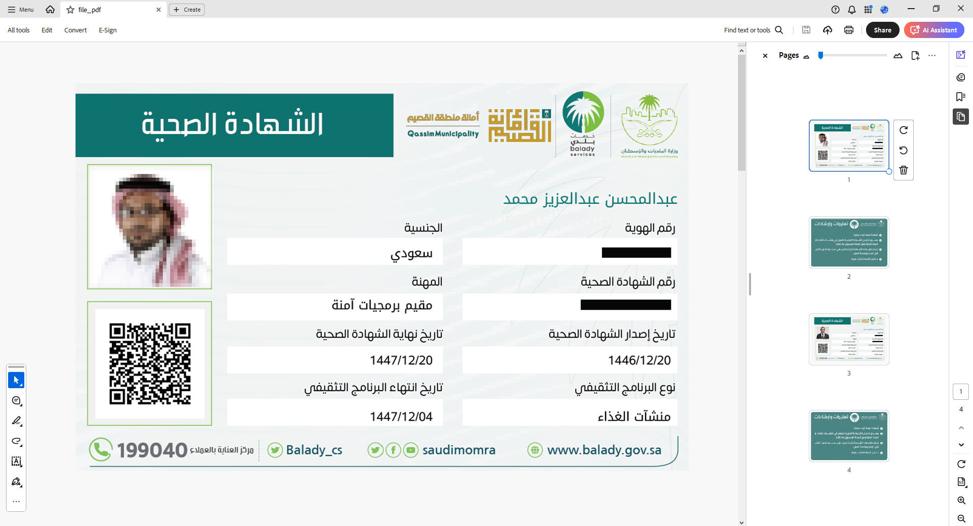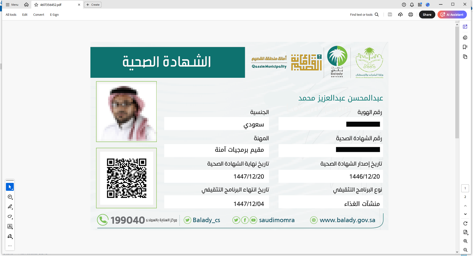 39) وبعد الضغط على الملف الأول تظهر الشهادة الصحية الأولى كما في الشكل أدناه.