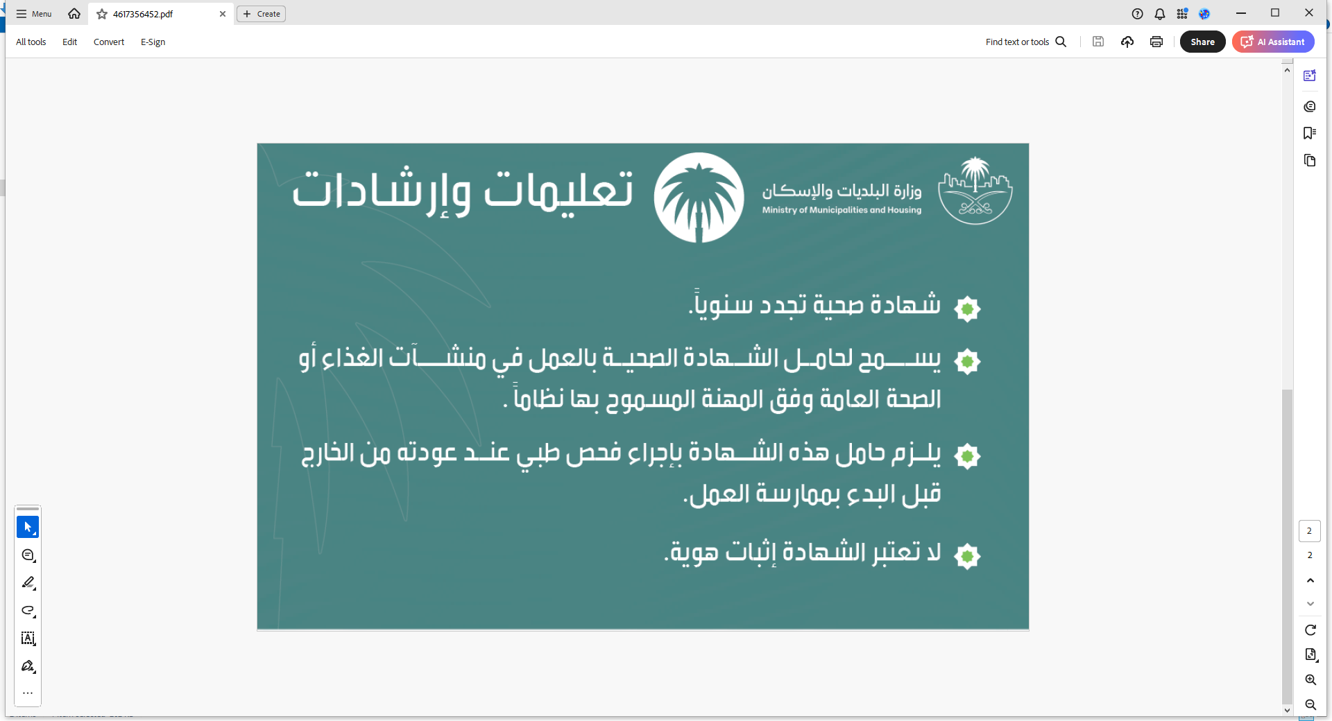 40) الصفحة الثانية من الشهادة الصحية الأولى.