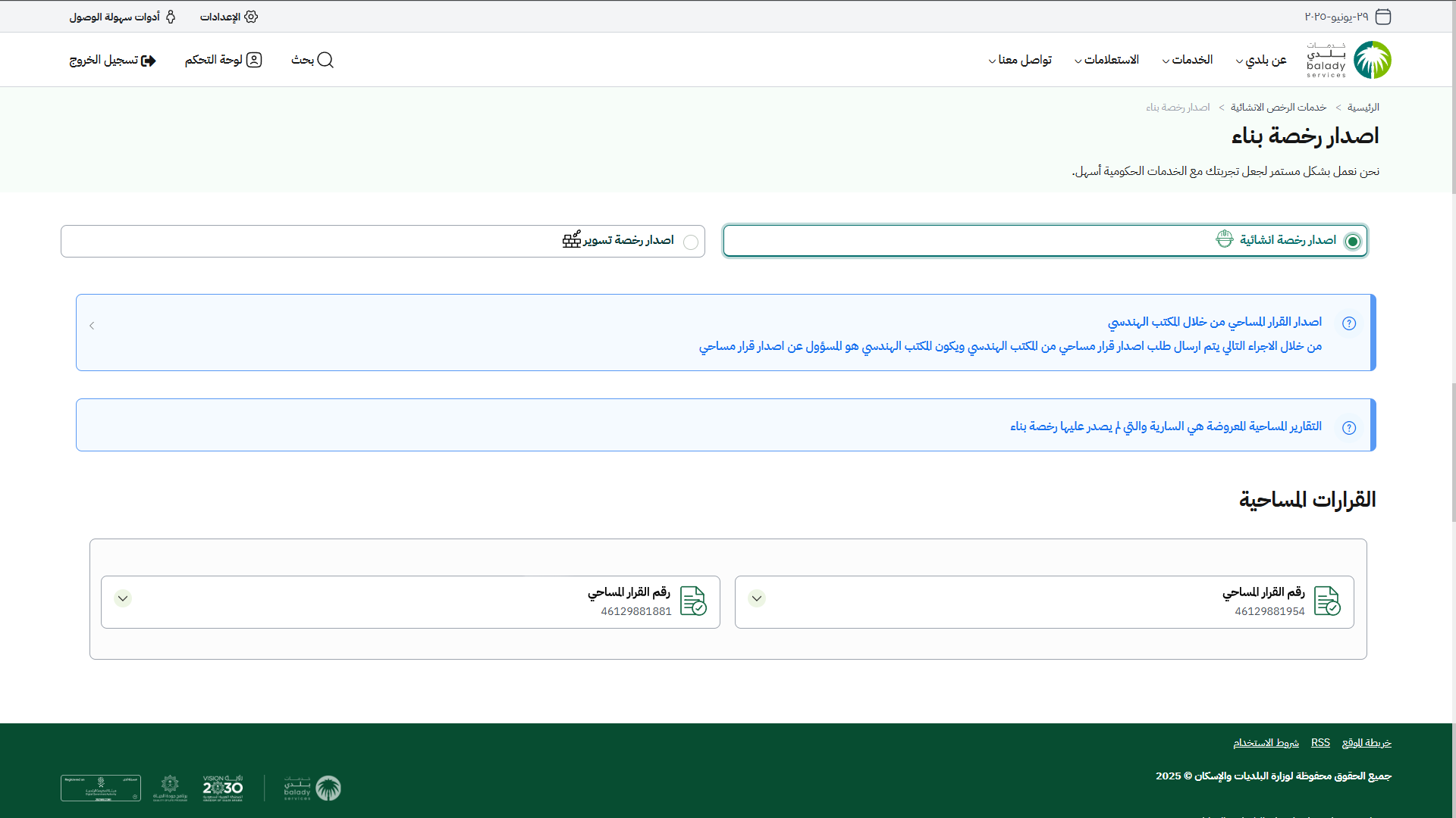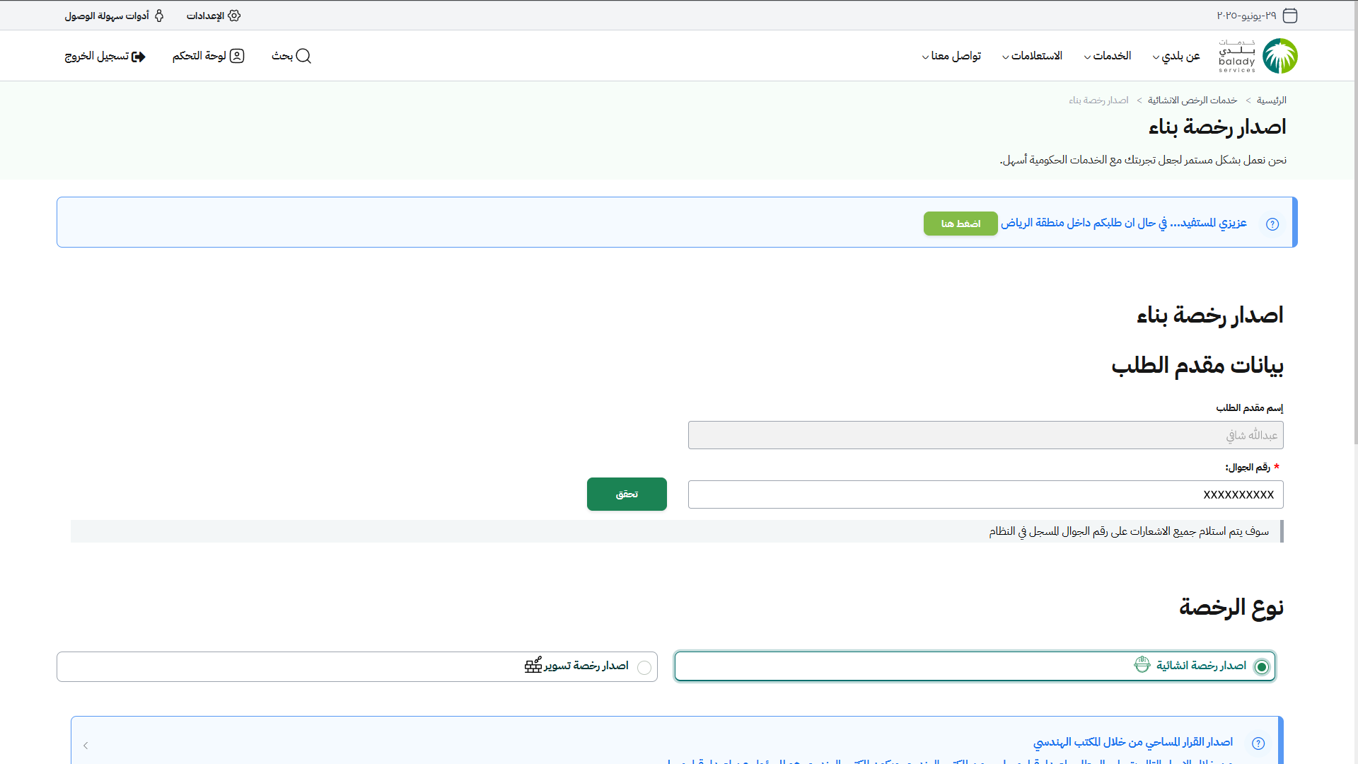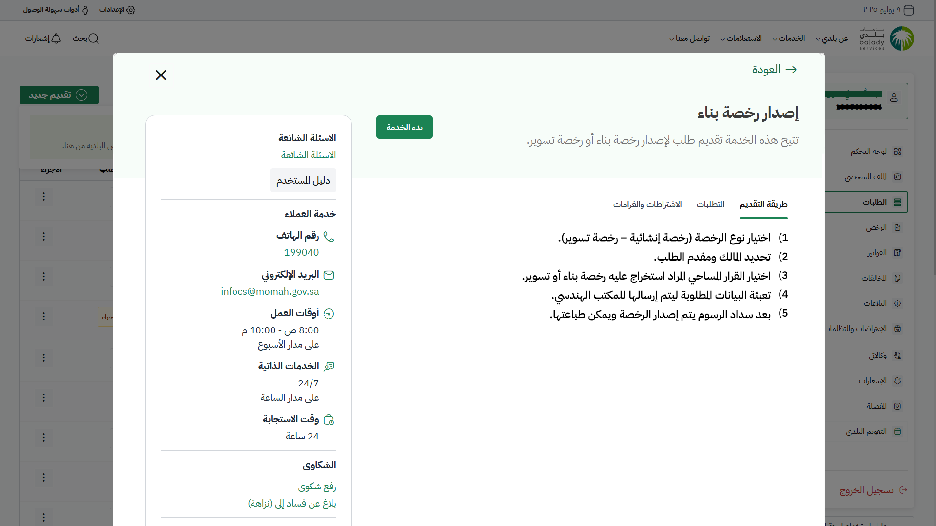 دليل المستخدم لخدمة إصدار رخصة بناء