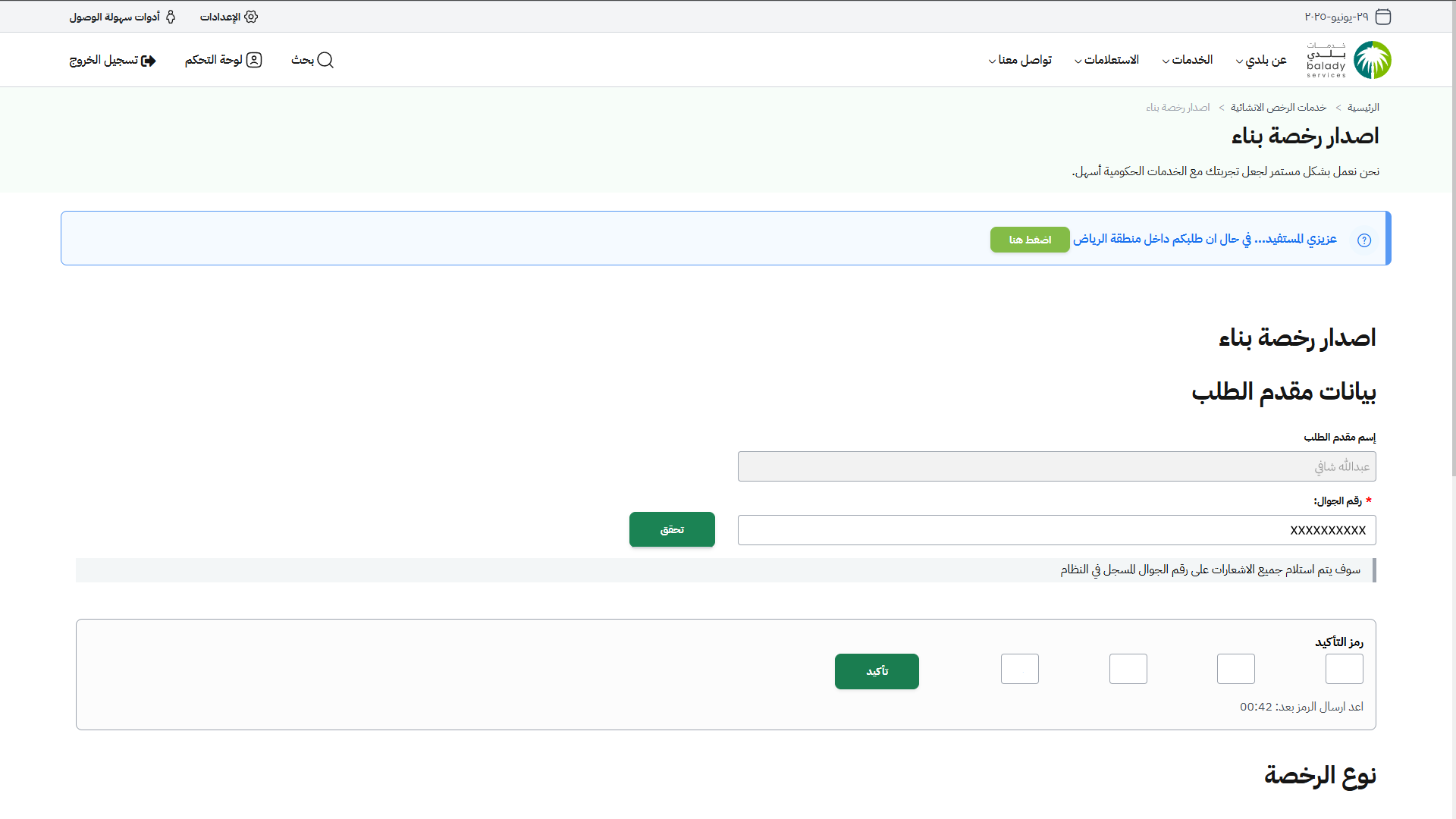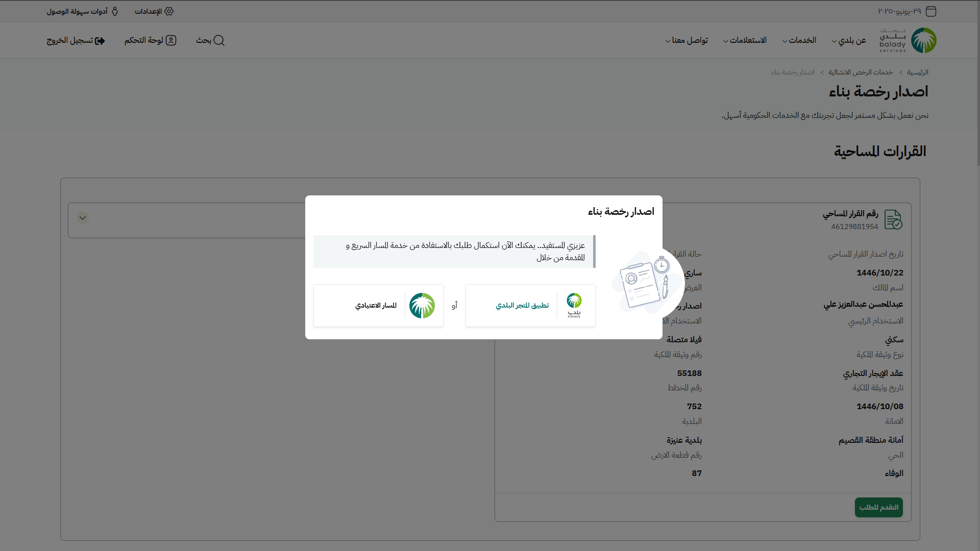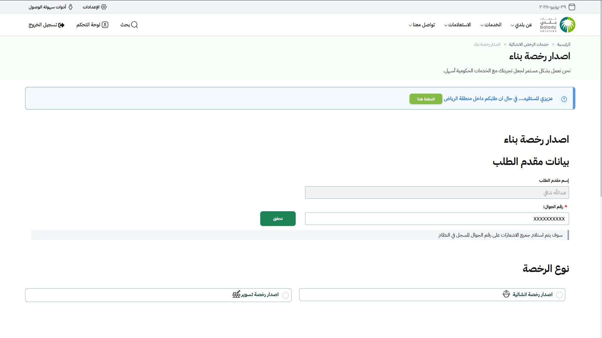 دليل المستخدم لخدمة إصدار رخصة بناء