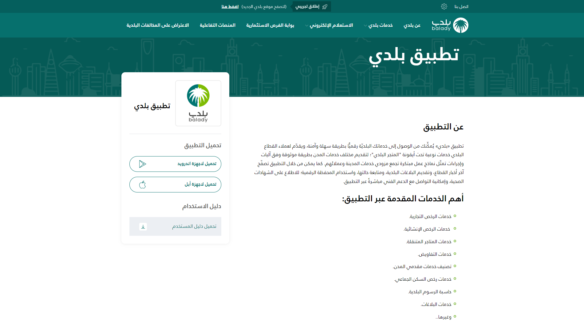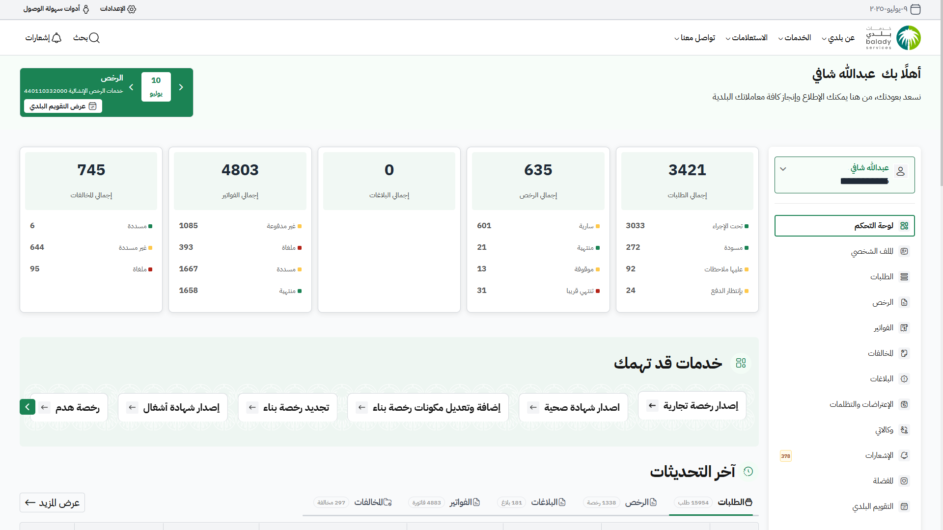 3) بعد الدخول إلى منصة بلدي، تظهر الشاشة الرئيسية للمنصة.