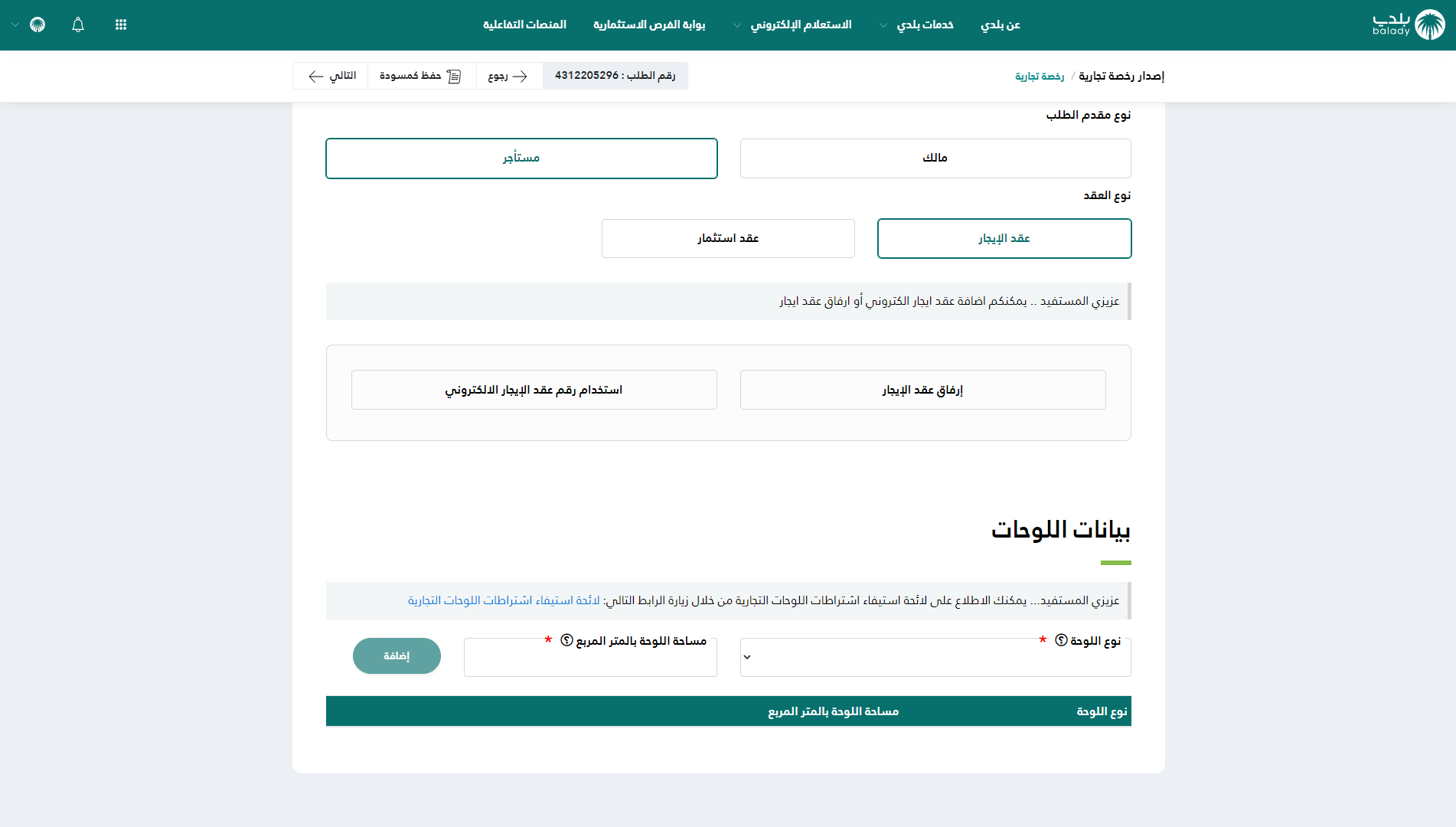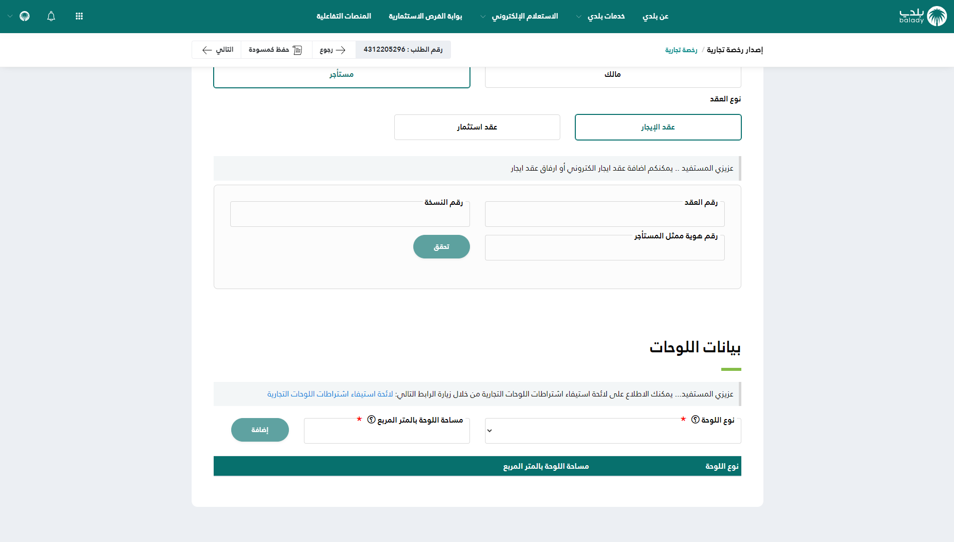 39) بعدها تظهر اللوحات المضافة للعقد كما في الشكل التالي، ويستكمل المستخدم الإجراءات.