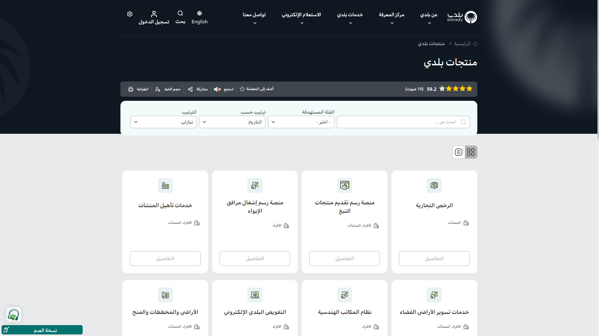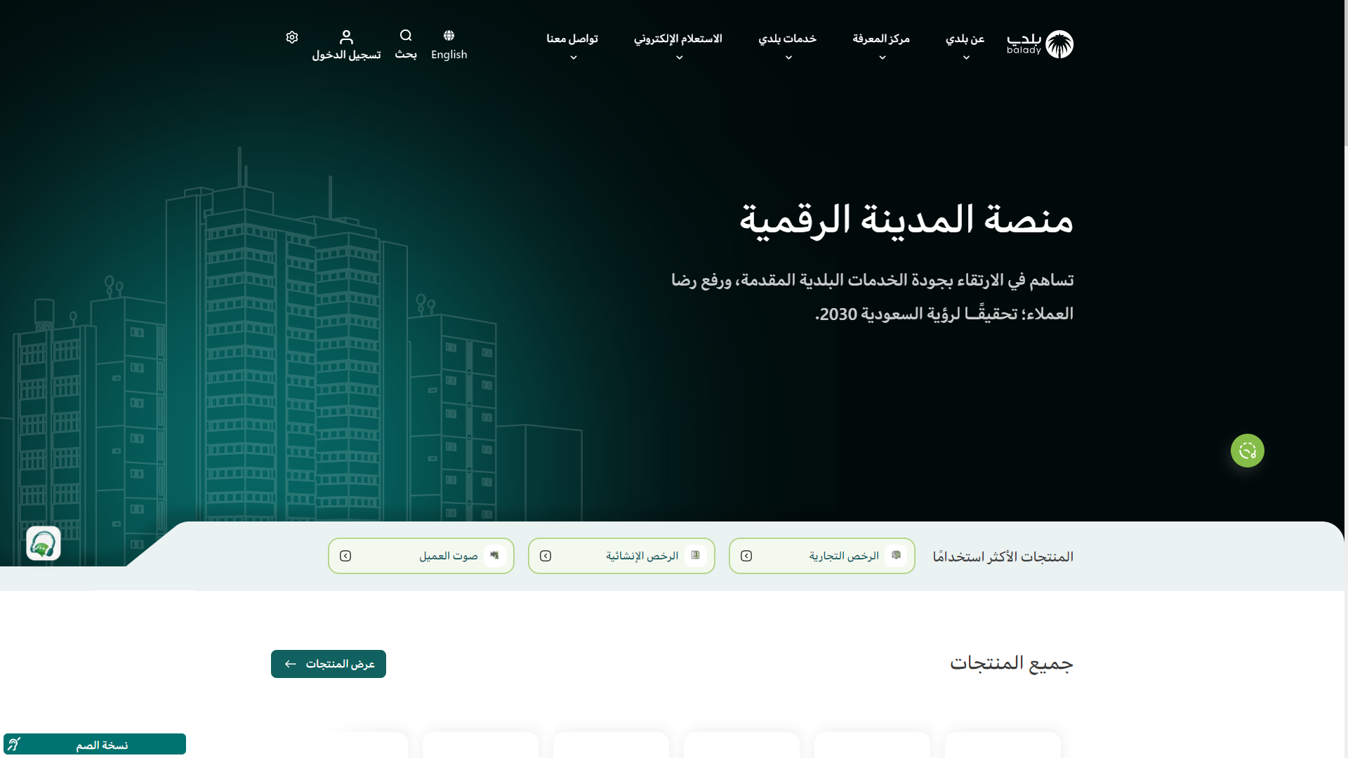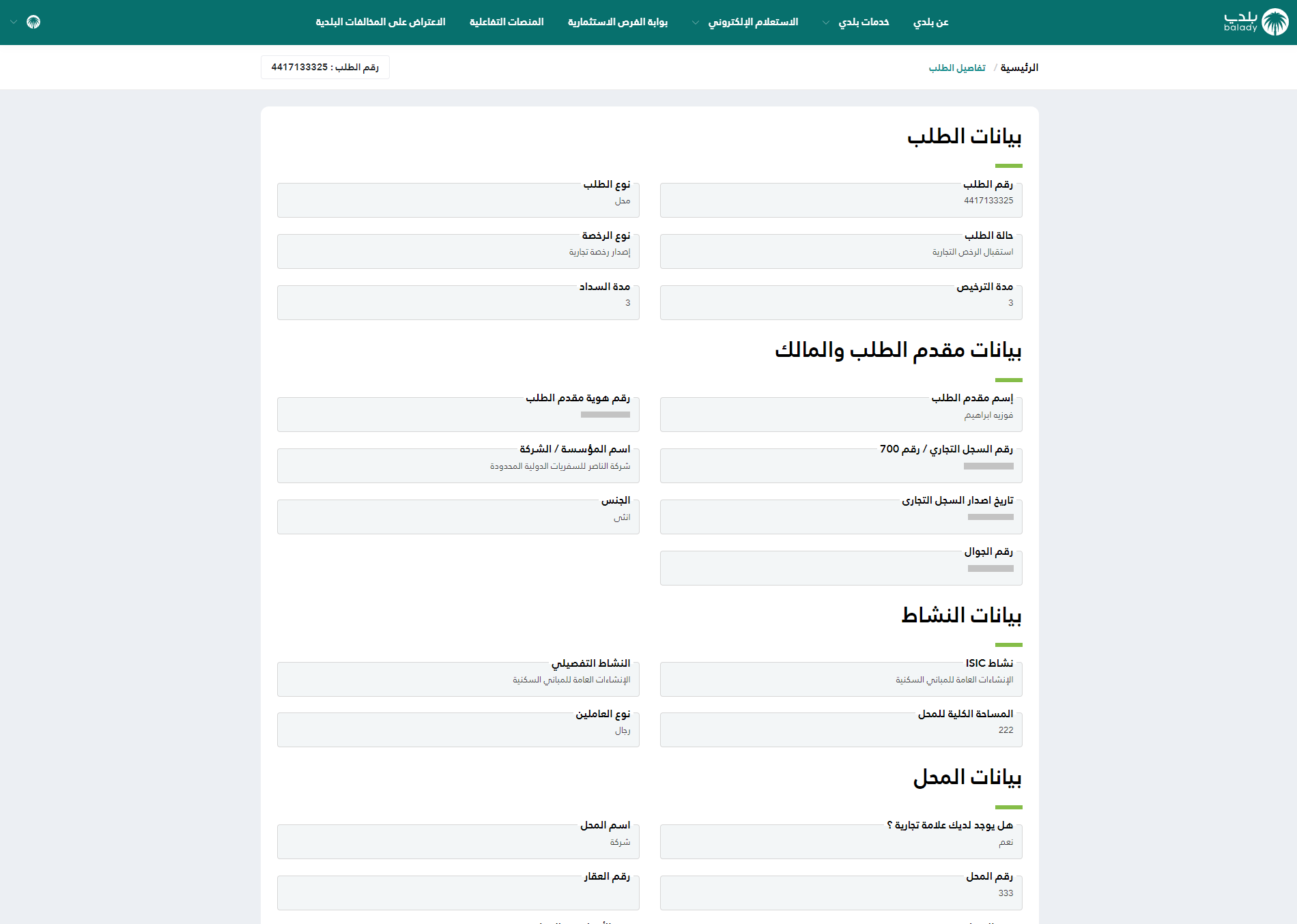 3) وبعد الدخول إلى منصة بلدي، تظهر الشاشة الرئيسية للمنصة كما في الشكل أدناه.
