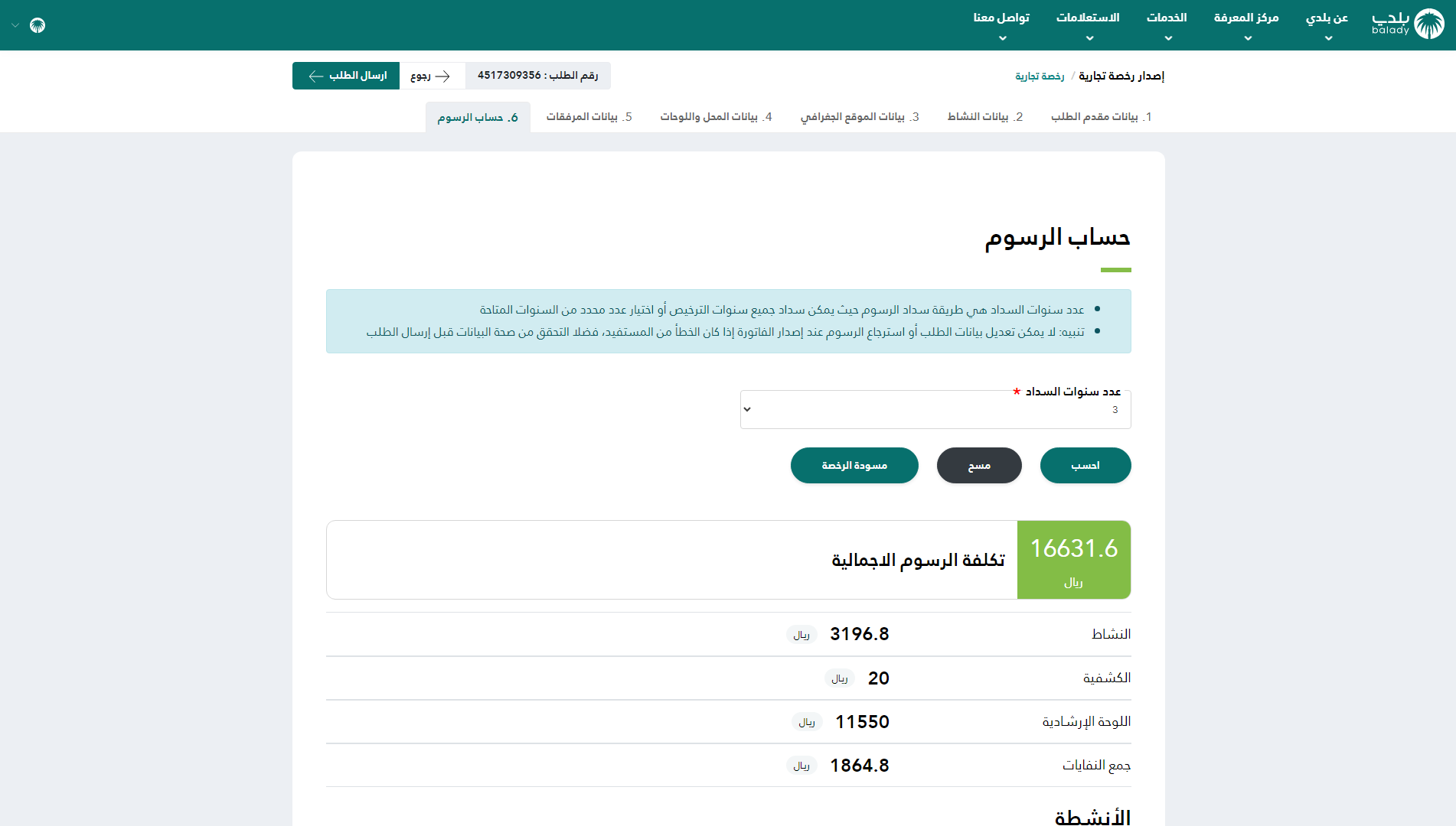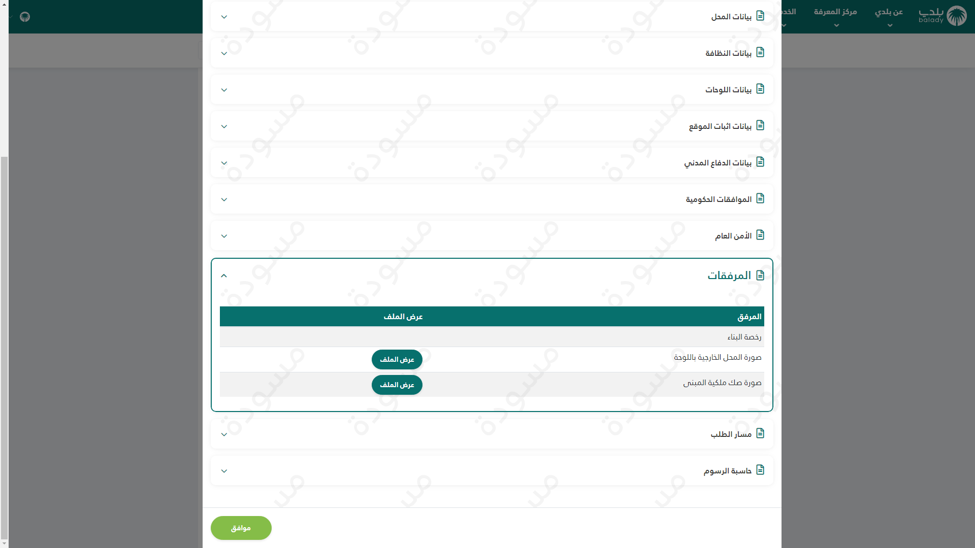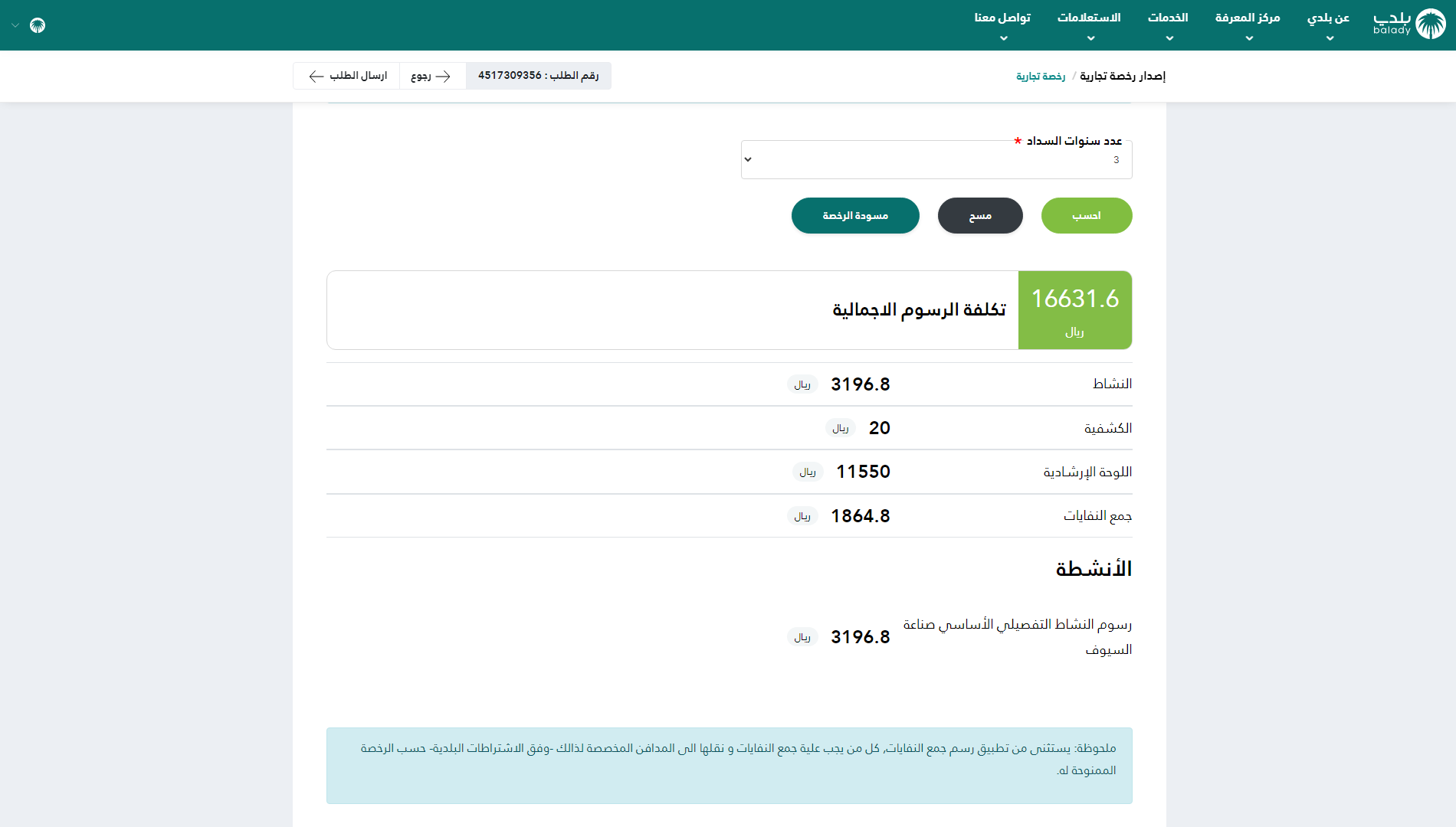 ويمكن من خلال الزر (مسودة الرخصة) أن يتم عرض جميع بيانات الرخصة المدخلة.